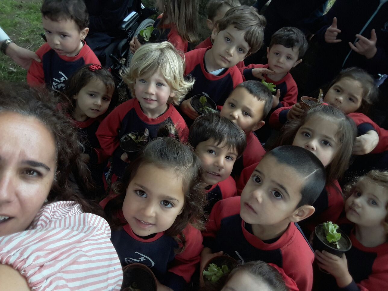 Esta mañana repetimos experiencia. Los niños/as de 4º Ed. infantil (3 años), acompañados por su profe Ana, se acercaron al huerto para ver nuestra plantación.